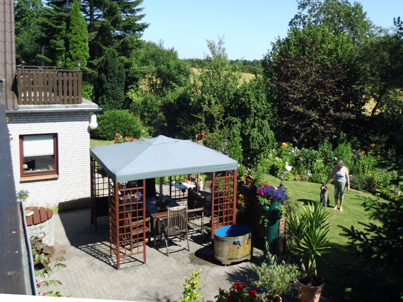 | Die Ferienwohnung ist eine von unserem Wohnhaus getrennte komplette Wohnung mit separatem Eingang. (Bild Startseite, linker Balkon) Sie hat einen großen Wohnraum, drei Schlaf- räume, Küche und Bad und ist ca. 80 qm groß. Sie ist ausgelegt für 5 Personen (3 Erwachsene und 2 Kinder). Im Bedarfsfall kann ein vorhandenes Baby-Bett aufgestellt werden. Zur Ausstattung gehören: Bettwäsche Hand- tücher, eigener Telefonanschluß, WLAN, SAT-TV , Radio mit CD-Player, Kaminofen, eine Heimorgel, Haarfön, verschiedene Spiele, zahlreiche Bücher, einige "Trimm-Dich" Gerätschaften - Fahrräder. Hunde sind willkommen (bitte vorher nachfragen) |